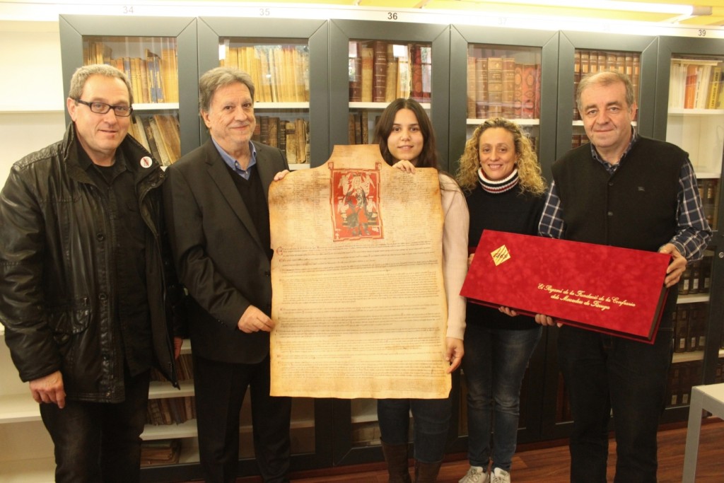 L’editorial catalana Millennium Liber ha editat un facsímil que reprodueix el pergamí de la fundació de la confraria dels mercaders de Tàrrega, document que data de l’any 1269. Es tracta d’una edició limitada de luxe amb 550 exemplars numerats. El pergamí original, del regnat de Jaume I, es troba custodiat a l’Arxiu de la Corona d’Aragó, a Barcelona, i és considerat de significativa importància ja que constitueix un dels primers exemples documentals que reflecteix l’ús de la llengua catalana. També destaca per la presència de membres femenines en el si de la confraria, un fet inusual a l’època i que testimonia la participació activa de les dones en la vida econòmica de la Tàrrega medieval. El document va donar forma jurídica a la creació de la confraria dels mercaders de Tàrrega i fou ornamentat amb una miniatura artística de la Mare de Déu de la Llet envoltada per quatre arcàngels.