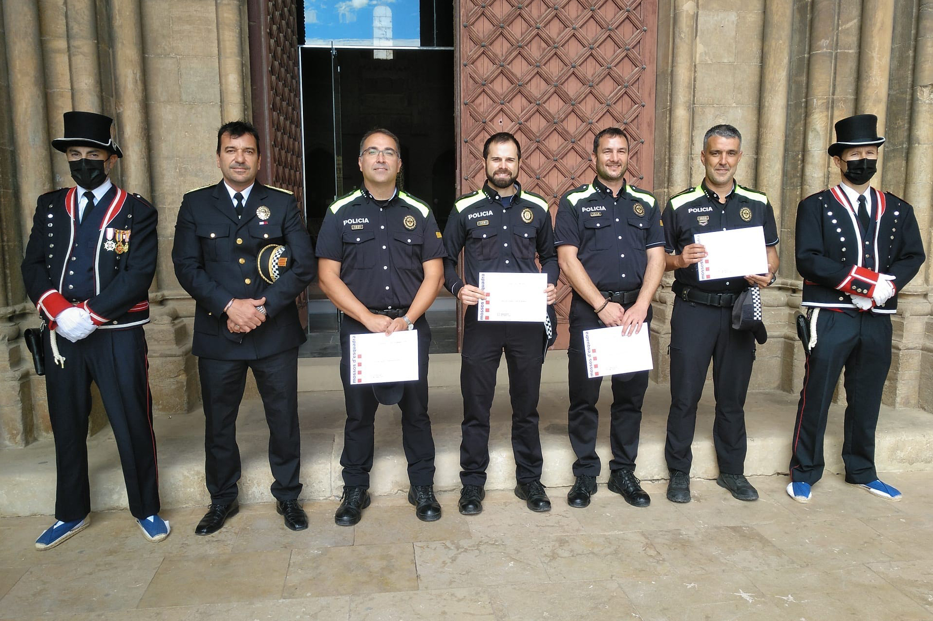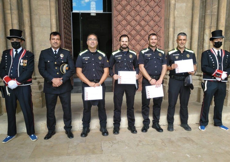 Quatre agents de la Policia Local de Tàrrega van rebre ahir dijous un reconeixement en el decurs de la celebració del Dia de les Esquadres de la Regió Policial de Ponent. El cos dels Mossos d’Esquadra lliurà felicitacions als agents de la Policia Local de Tàrrega per actuacions de mèrit. En concret, se’ls distingí per la seva col·laboració en una actuació conjunta amb els Mossos d’Esquadra que el febrer del 2020 va permetre detenir els tres autors de diversos robatoris amb força a l’interior de domicilis, un dels quals tenia pendent una ordre de recerca i detenció. El Dia de les Esquadres, acte celebrat a la Seu Vella de Lleida, ha reconegut així la tasca de la plantilla de la Policia Local de Tàrrega i les seves accions dignes d’elogi per prevenir i combatre els delictes al territori.