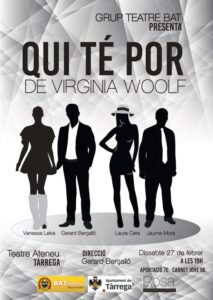 Elenc i equip tècnic del Grup de Teatre BAT de Tàrrega recuperen l’estrena ajornada de la seva adaptació del clàssic contemporani d’Edward Albee. La representació s’inclou ara, fora de competició, dins la 32a edició del Concurs de Grups de Teatre “Ciutat de Tàrrega”. La Martha i el Ramon s’estimen, s’odien i es necessiten. S’aboquen a aquest precipici amb un arsenal d’alcohol i la pràctica d’un pervers joc de sadomasoquisme emocional. Un joc de rols obert a altres parelles-víctima per afegir nous al·licients a una relació que funciona com una toxicomania. Un dels cims del teatre contemporani, obra del dramaturg Edward Albee, guanyador de tres premis Pulitzer.
