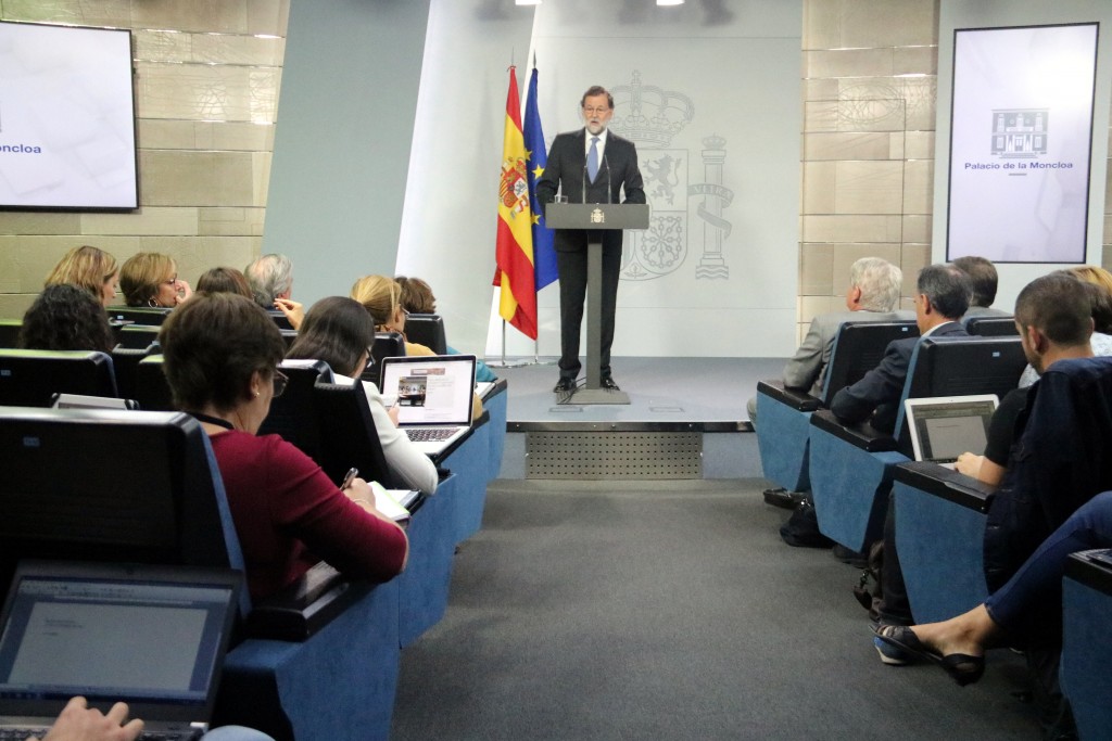 ACN Madrid.-El president del govern espanyol, Mariano Rajoy, ha anunciat aquest divendres les primeres mesures que adopta d’acord a l’article 155 de la Constitució per al que ha obtingut l’aval del Senat, que comporten el cessament del president de la Generalitat, Carles Puigdemont, el vicepresident, Oriol Junqueras, i tot el seu Govern, i la designació dels Ministeris com els òrgans que gestionaran les competències de cada àrea. El president espanyol també ha acordat la dissolució del Parlament de Catalunya i la convocatòria d’eleccions autonòmiques el 21 de desembre. A més, ha anunciat l’extinció de les oficines del president i del vicepresident, del Consell de la Transició Nacional, del DIPLOCAT, de totes les delegacions a l’estranger excepte Brussel·les i del cessament dels delegats de Brussel·les i Madrid. També el cessament del secretari de l’Interior, César Puig, i del director general dels Mossos, Pere Soler. A més, el Consell de Ministres espanyol ha aprovat presentar un incident d’execució de sentència davant del TC contra les resolucions aprovades al Parlament de Catalunya.