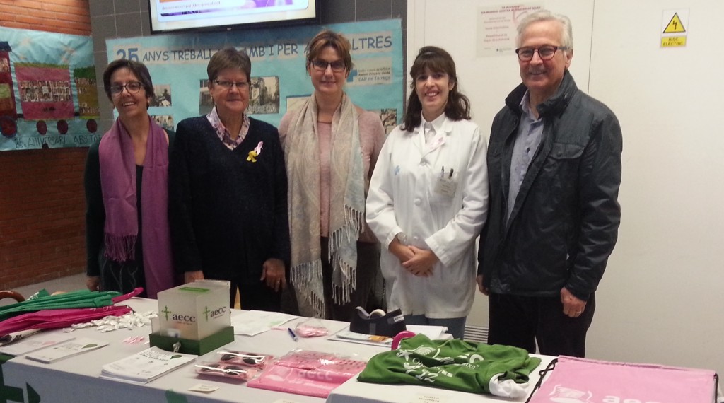 Ahir, dia 19 d’octubre, durant tot el matí, al vestíbul del CAP de Tàrrega, l’Equip d’Atenció Primària i els membres de l’ aecc de Tàrrega, van tenir instal·lada una taula informativa i van repartir llaços de color rosa, distintiu de la lluita contra el càncer de mama.