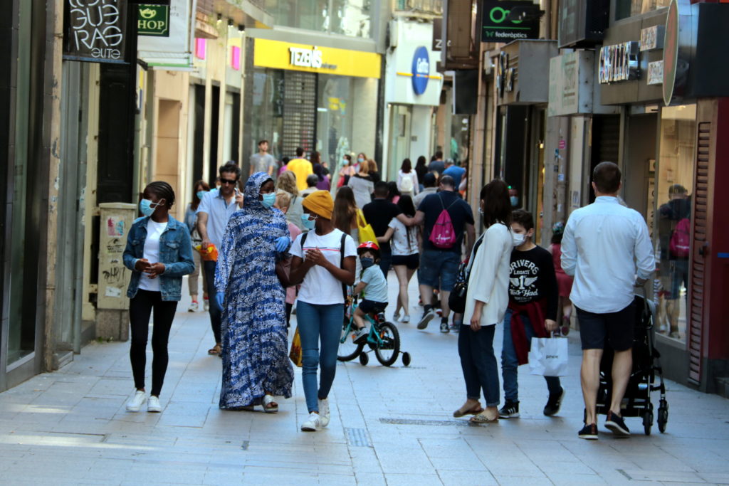 Imatge de gent caminant per l’Eix Comercial de Lleida, el 18 de maig del 2020. (Horitzontal)