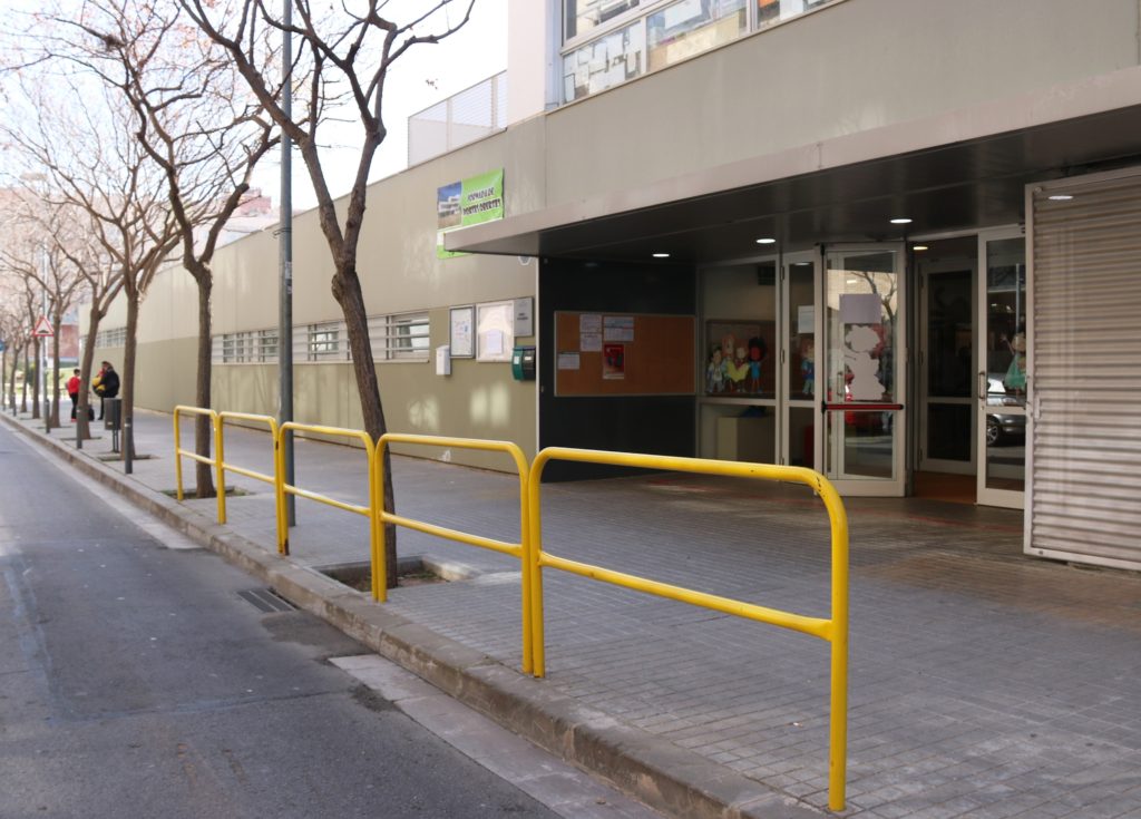 Pla general de l’entrada de l’escola Mas Boadella de Sabadell que ha estat tancada pel coronavirus. Imatge del dia 12 de març de 2020. (Horitzontal)