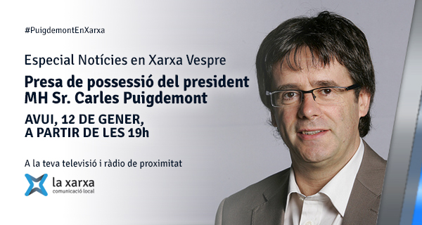 La Xarxa distribuirà en directe per a les televisions i ràdios adherides un Especial Notícies en Xarxa Vespre (de 19 a 20h) dedicat a la presa de possessió del president MH Sr. Carles Puigdemont.