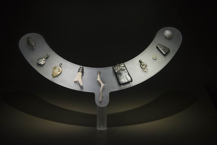 Aquesta és la segona vegada que el Museu Tàrrega Urgell, mitjançant la Regidoria de Patrimoni, cedeix el collaret d’amulets. Cal recordar que l’any 2015, aquesta peça va viatjar fins a París per formar part de la mostra temporal ‘Magie. Anges et démons dans la tradition juive’ al Museu d’Art i Història del Judaisme, una de les institucions de més prestigi en aquest àmbit per la seva tasca en la preservació de la cultura jueva.