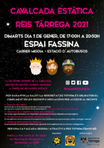 El proper dimarts 5 de gener de 2021, de 17:00 a 20:30 h, l’espai Fassina del C/Migdia acollirà la CAVALCADA ESTÀTICA on els més petits de la ciutat podran donar una càlida benvinguda a SS.MM. Els Reis Mags d’Orient.