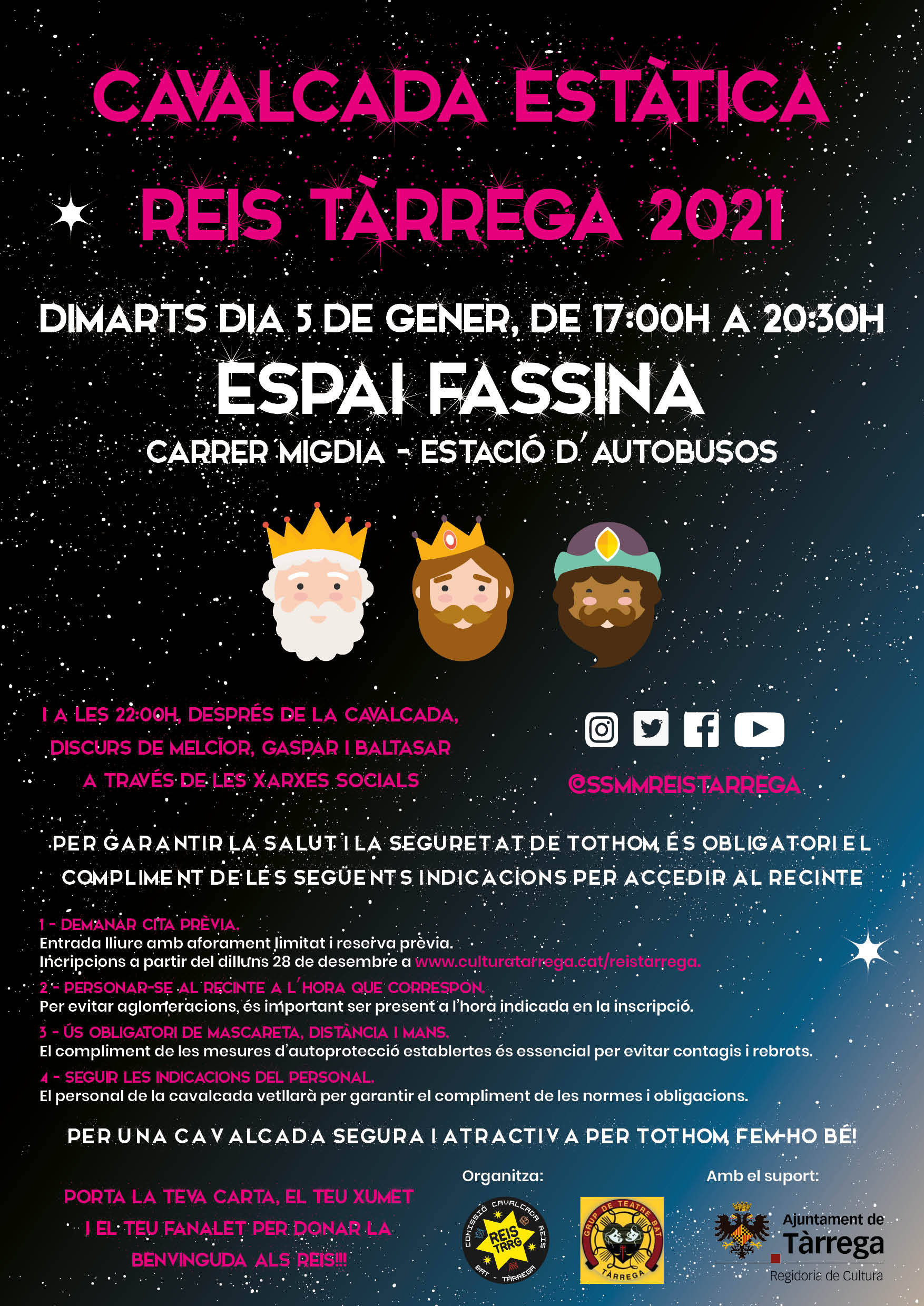 Des de la Comissió de la Cavalcada de Reis – BAT TÀRREGA agraïm la col·laboració de la ciutadania per a fer entre tots una Cavalcada segura i atractiva per tothom.