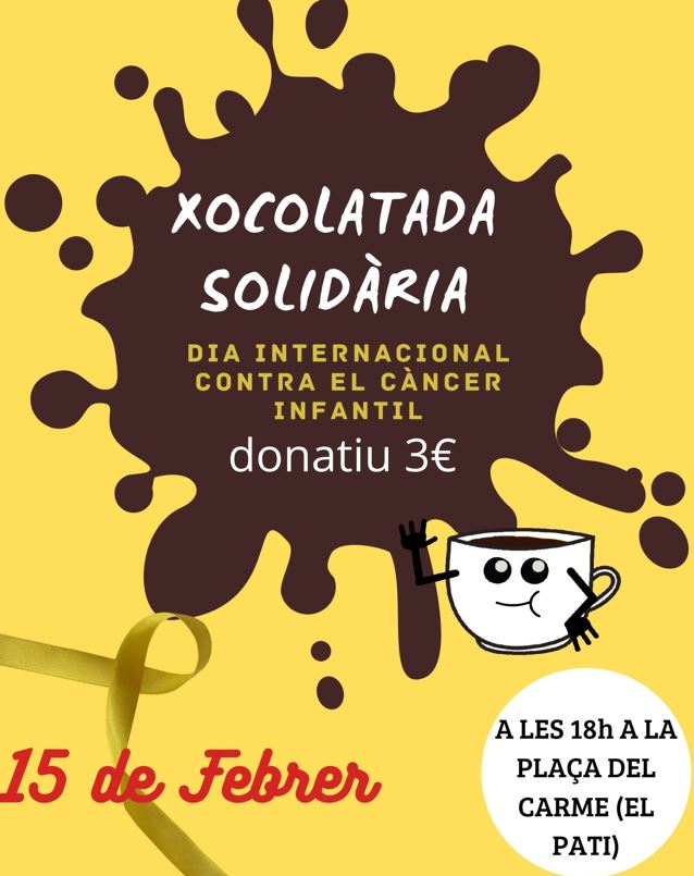 Xocolatada popular dimarts 15 de febrer a la plaça del Carme impulsada pel Pla Educatiu d’Entorn en favor de la investigació de la malaltia a l’Hospital Sant Joan de Déu