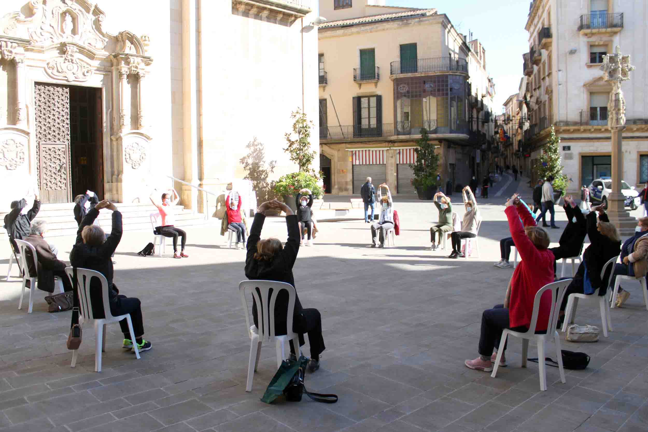 Tàrrega acull durant l’octubre diverses activitats d’oci, salut i cultura per ajudar a combatre situacions de soledat no volguda entre les persones grans. Són propostes adreçades al col·lectiu de gent gran i alhora al conjunt de la ciutadania amb l’objectiu de conscienciar sobre aquesta problemàtica social i crear vincles que contribueixin a eradicar-la. L’acció forma part del programa “Sempre acompanyats”, que des del 2017 desenvolupen la Fundació ‘la Caixa’, la Regidoria d’Acció Social d’Intervenció de Tàrrega i Creu Roja. Dins aquest marc, avui dimarts s’ha impartit un taller de gimnàstica suau per a gent gran a la plaça Major amb la participació d’una quinzena de persones. L’activitat s’ha dut a terme amb la col·laboració de la Regidoria d’Esports i aplicant els protocols de seguretat sanitària (distància, mans, mascareta).