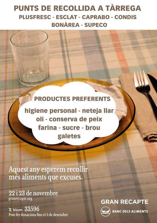 Tàrrega es mobilitza amb el Gran Recapte d’Aliments els dies 22 i 23 de novembre