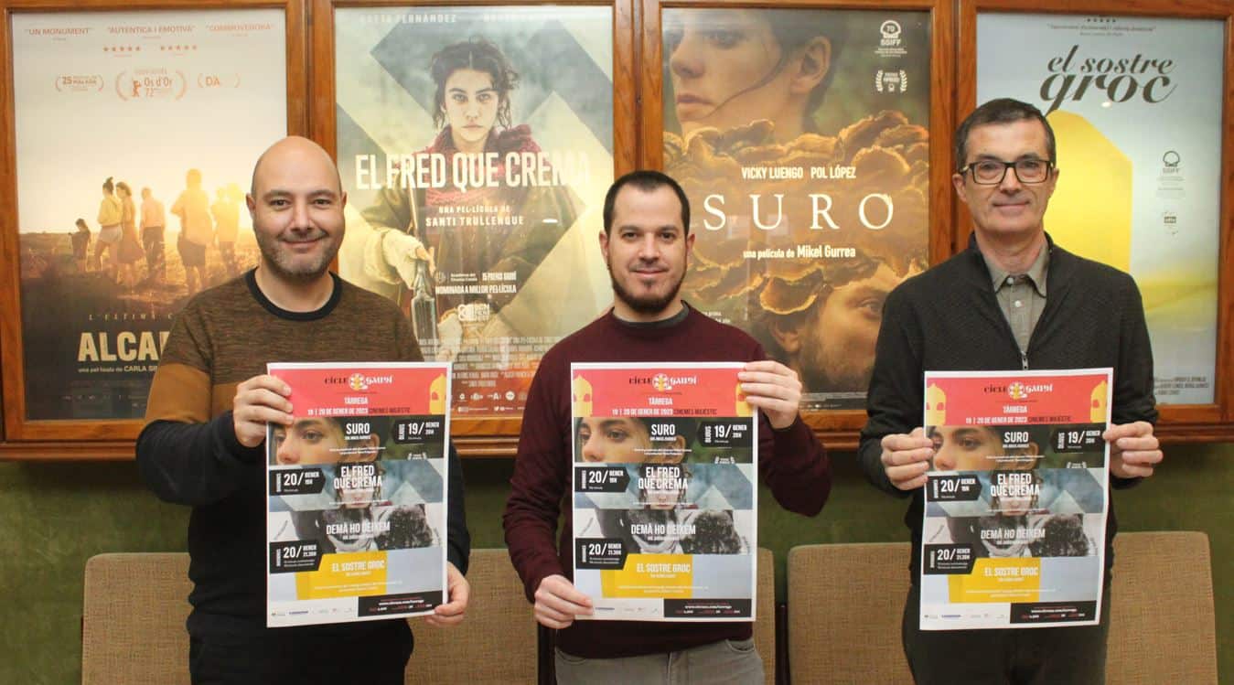 El cicle a Cinemes Majèstic s’obrirà el dijous 19 de gener, a les 8 del vespre, amb la projecció per primer cop a Tàrrega del film ‘Suro’, que opta a 10 categories inclosa la de millor pel·lícula. La sessió comptarà amb la presència de Mikel Gurrea i Tono Folguera, director i productor d’aquest drama ambientat a l’Empordà i protagonitzat per Vicky Luengo i Pol López (Gurrea és candidat a recollir el premi a millor director novell).