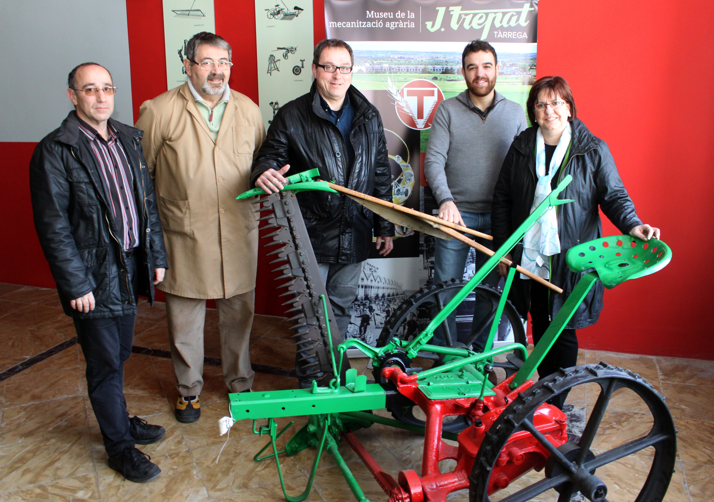 maquina trepatEl Museu de la Mecanització Agrària Cal Trepat de Tàrrega ha ampliat el seu espai expositiu incorporant una nova peça de singular valor: una segadora dels anys 50 del segle passat fabricada a l’antiga factoria targarina. La màquina ha estat restaurada pel Centre de Formació La Solana, de gestió municipal i dedicat a l’aprenentatge d’oficis. Localitzada en una de les naus del complex, l’eina agrícola llueix els colors originals amb què la firma targarina comercialitzava aquest tipus de maquinària. La segadora que s’exhibeix al públic correspon al model 700 de tracció animal que Cal Trepat dissenyà inspirant-se en les McCormick nord-americanes. S’estima que Cal Trepat fabricà unes 33.000 unitats d’aquesta segadora, comercialitzades arreu de la geografia espanyola. En el mateix espai, el Museu Cal Trepat exposa al públic diverses segadores i garbelladores de l’antiga fàbrica com a exponents de la mecanització del camp a partir de l’any 1914, dins l’anomenada segona revolució industrial. Fundat l’any 2012 per l’Ajuntament de Tàrrega, el Museu Cal Trepat també proposa al visitant un recorregut per cinc naus del complex on es fabricava la maquinària.