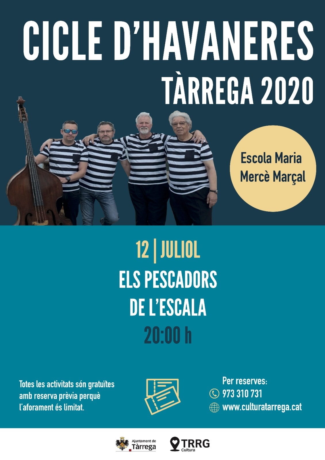 La Regidoria de Cultura de Tàrrega començarà aquest diumenge a les 20h el cicle d’havaneres amb l’actuació del popular grup ‘Els Pescadors de l’Escala’. Fundat l’any 1964, és el grup més antic de l’havanera i cançó de taverna i han rebut un gran nombre de distincions com la Creu de Sant Jordi amb que van ser guardonats l’any 2014 per la Generalitat de Catalunya.