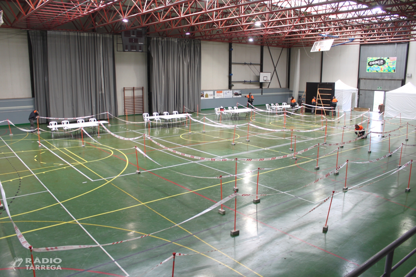 L’Ajuntament de Tàrrega ha iniciat avui dimarts les tasques per habilitar els quatre col·legis electorals que s’obriran diumenge vinent en grans equipaments esportius i culturals amb motiu dels comicis al Parlament de Catalunya. Com ja s’informà, per donar compliment als protocols de seguretat sanitària fixats pel PROCICAT, el consistori ha optat per traslladar les 17 meses de votació a l’Espai MerCAT (3), el Pavelló Municipal d’Esports (5) i els pavellons dels col·legis Àngel Guimerà (5) i Sant Josep Vedruna (4). Es tracta d’instal·lacions que per les seves majors dimensions ajudaran a garantir la distància física.