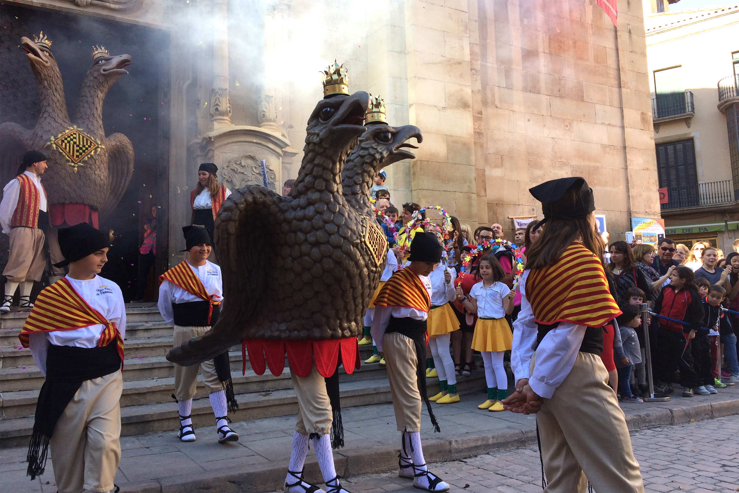 - EIXIDA – Exhibició de balls tradicionals (a 2/4 de 2 del migdia, a la plaça Major) La Festa Major atorga protagonisme als diversos elements del folklore tradicional local. Enguany s’homenatjarà de forma especial l’Àliga de Tàrrega commemorant el desè aniversari de la creació d’aquest símbol solemne del bestiari. Autoritats i ciutadania ballaran l’Eixida, la dansa típica de Tàrrega. Després, Balls de Bastonets amb l’Esbart Albada; Ball de Gegants i Dansa dels Capgrossos amb La Fal·lera Gegantera; Balls d’Arquets, Nans, Cavallets i Lo Tossino amb Guixanet; i una sardana d’exhibició amb l’Agrupació Amics de la Sardana. La música en directe anirà a càrrec de la Cobla Tàrrega, els Grallers de La Fal·lera Gegantera i els Grallers de la Barra.