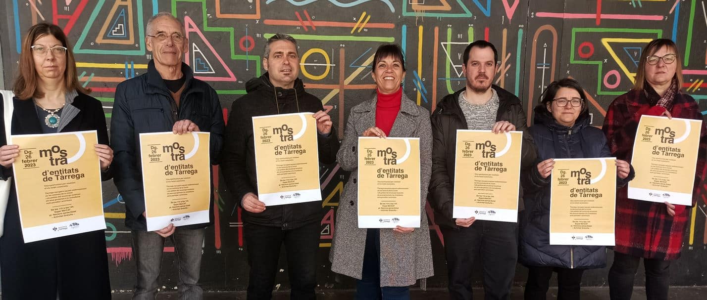 La Mostra d’Entitats de Tàrrega és una iniciativa transversal que aplega recursos de diferents àrees del consistori al costat d’AgEnTa. A la imatge adjunta, mostren el cartell de la proposta l’alcaldessa Alba Pijuan Vallverdú; el regidor de Ciutadania, Xavier Rossell-Aparicio; el regidor de Participació, Carlos Vílchez; el president d’AgEnTa, Joan Amézaga; i les tècniques de Joventut, Participació i Ciutadania.