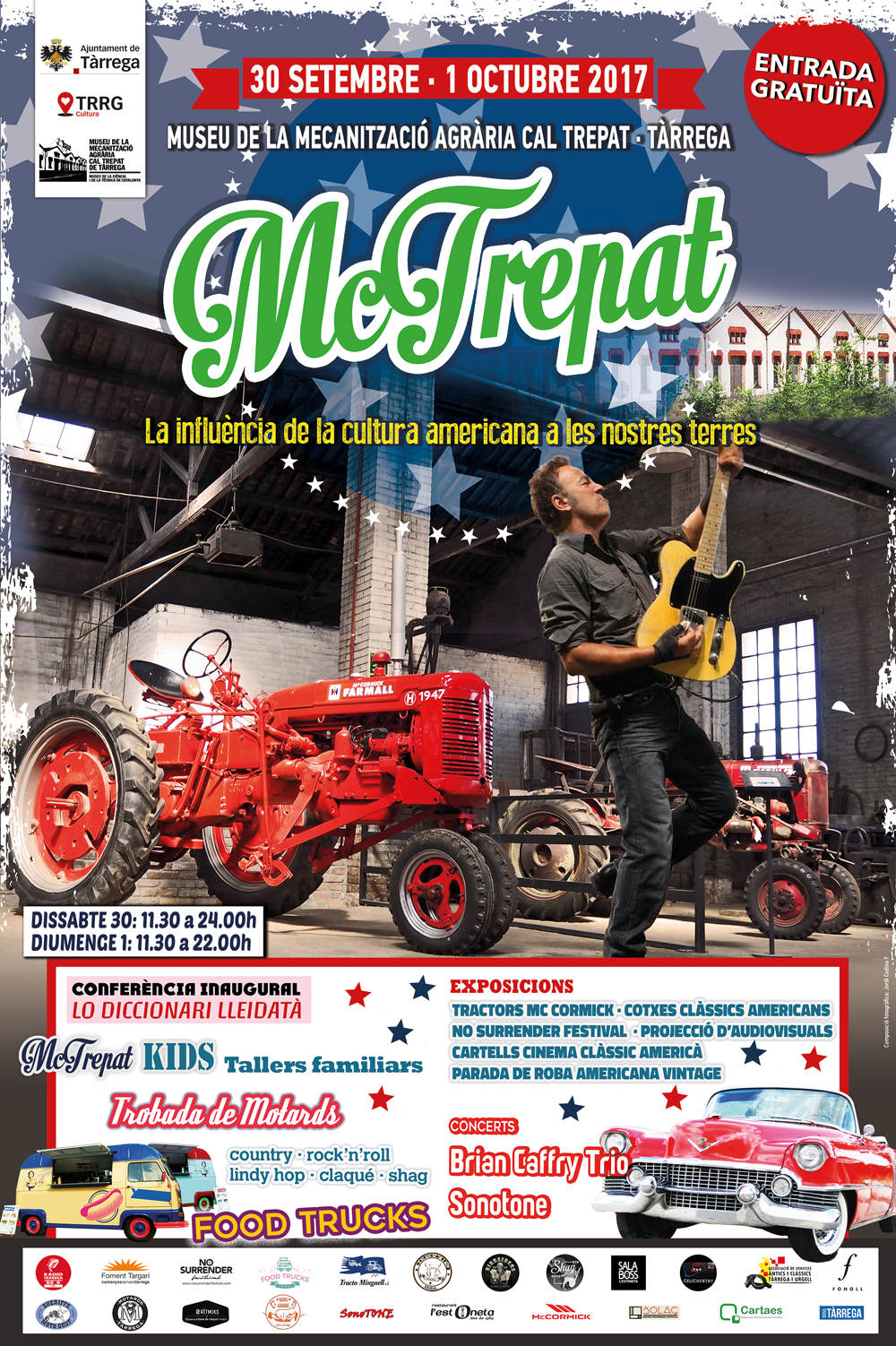 El McTrepat 2017, que es desenvoluparà al complex museístic de Cal Trepat, oferirà exposicions de maquinària McCormick; cartells de pel·lícules mítiques de Hollywood cedits per Pere Domingo; vehicles clàssics; i singulars objectes de col·leccionista vinculats al cantant Bruce Springsteen, aportats pel No Surrender Festival de Vilanova de Bellpuig. A la nau de la foneria, paral·lelament, es projectaran audiovisuals sobre la indústria als Estats Units. També s’hi donarà cita una trobada de motards i una parada de roba vintage organitzada per Cartaes. Altres convidats són els autors de “Lo diccionari lleidatà” (Robert Masip, Ferran Montardit i David Prenafeta), que durant la conferència inaugural de dissabte cercaran influències americanes en la nostra manera quotidiana de parlar.