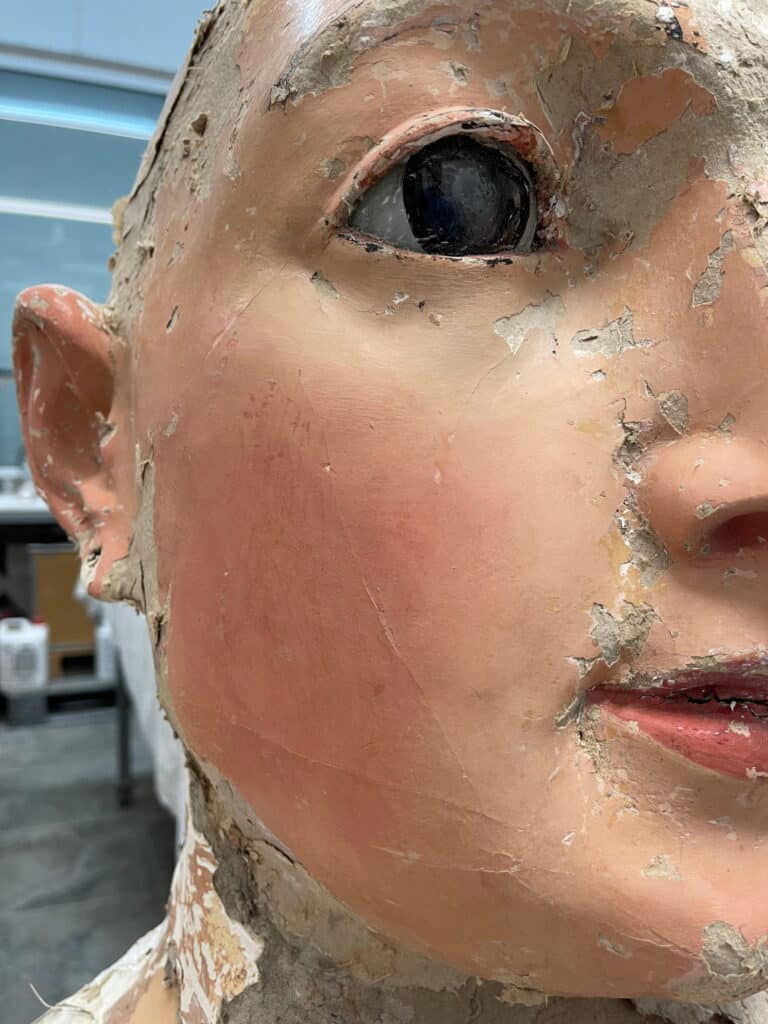 En el transcurs de la intervenció s’han pogut recuperar els ulls originals de vidre d’ambdues figures, que simbolitzen els comtes de Barcelona, Ramon Berenguer I i Almodis. A més de recuperar les obres de les diverses caigudes, impactes, trencaments i intervencions desafortunades que els han malmès amb el pas del temps, l’acció també ha permès descobrir que el gegant té dents, que actualment restaven cobertes per material afegit en altres actuacions. Com a curiositats, podem dir que a la geganta fa dècades hi havia hagut un niu de ratolins i que les obres es troben en estat pulverulent.