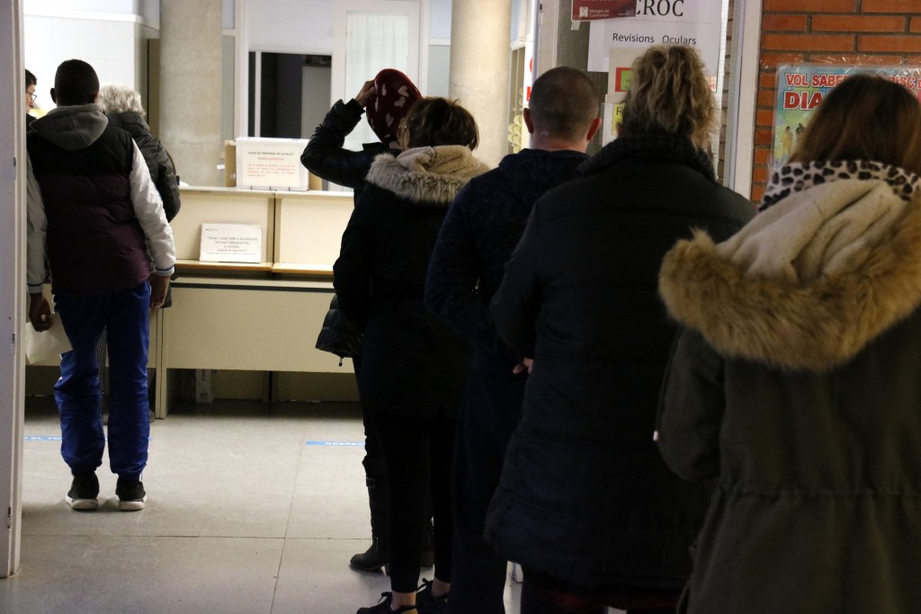 Pla mitjà on es pot veure gent fent cua per accedir al taulell de recepció del CAP de Tàrrega el 26 de novembre de 2018. (Horitzontal)