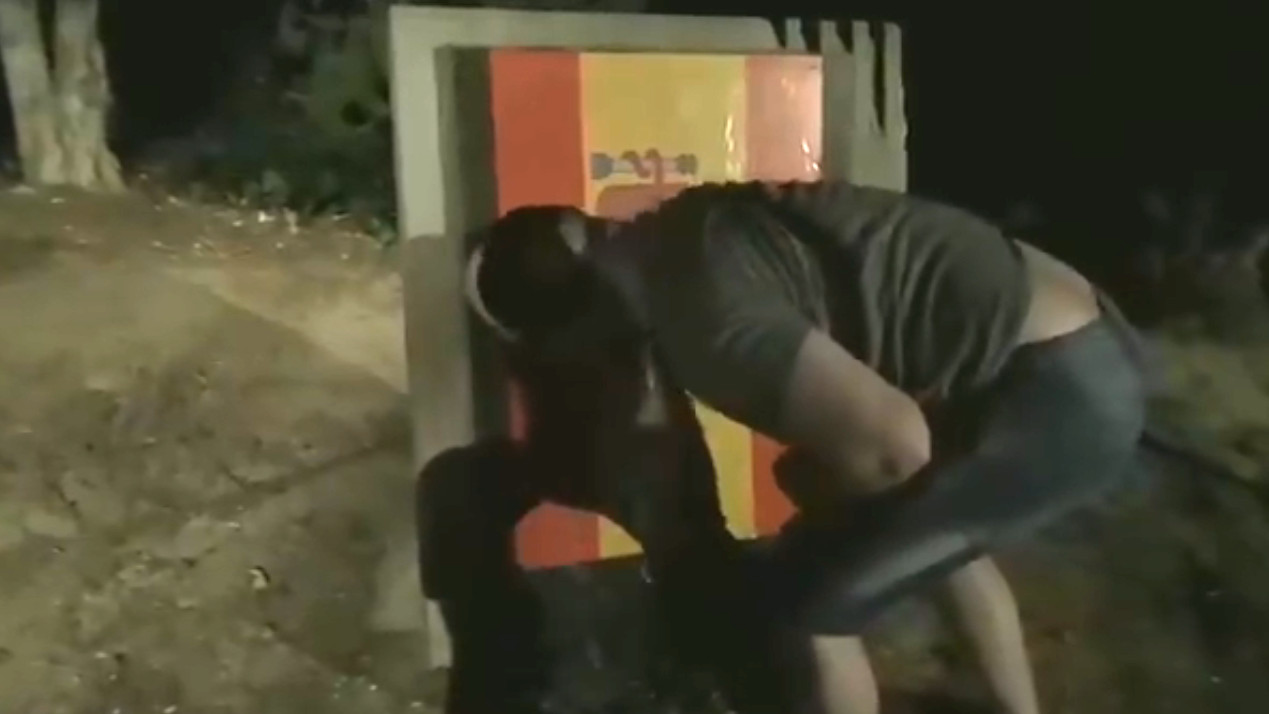 Captura de pantalla del vídeo enregistrat per l’Asociación Unión de Brigadas sobre l’acte vandàlic al monument a Companys, al Tarròs, el 29 de juny de 2020. (Horitzontal)